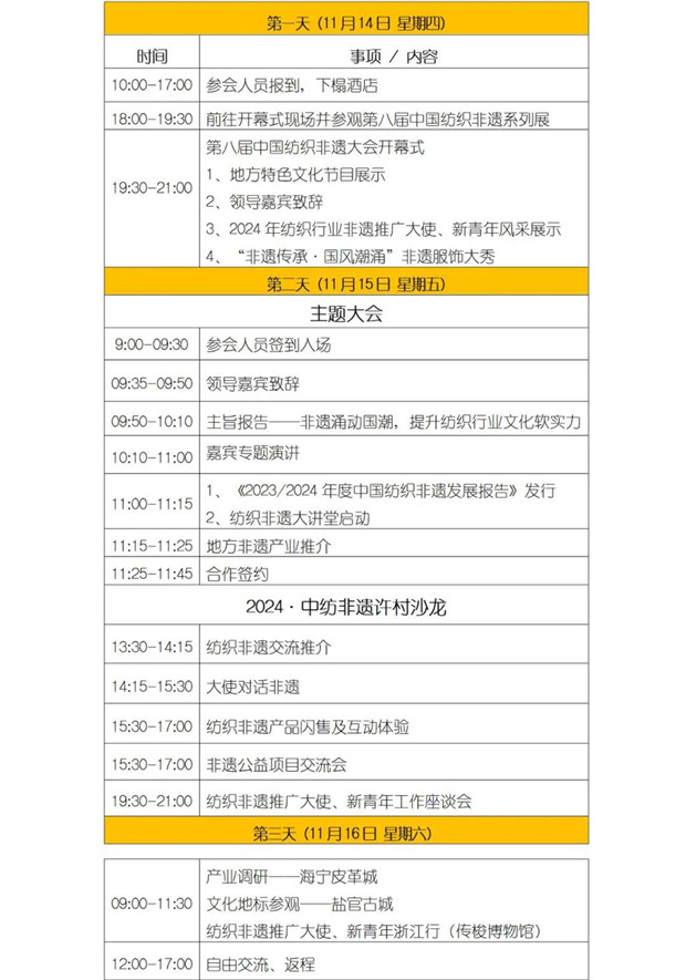 非物質(zhì)文化遺產(chǎn)猶如璀璨星辰,照亮了人類(lèi)文明的進(jìn)程,承載著先輩們的智慧與情感,是連接過(guò)去與未來(lái)的橋梁。2024年11月14日至16日,中國(guó)紡織工業(yè)聯(lián)合會(huì)將在浙江省海寧許村召開(kāi)主題為“非遺傳承 國(guó)風(fēng)潮涌”的第八屆中國(guó)紡織非物質(zhì)文化遺產(chǎn)大會(huì),旨在深入探究紡織非遺產(chǎn)業(yè)化發(fā)展路徑,聚焦現(xiàn)代設(shè)計(jì)與商業(yè)價(jià)值轉(zhuǎn)換,發(fā)揮產(chǎn)業(yè)集群推動(dòng)國(guó)風(fēng)國(guó)潮走進(jìn)時(shí)尚生活的重要作用,為提升。
