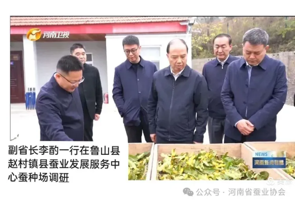 2024年10月31日,河南省副省長李酌攜省農村農業(yè)廳廳長、省林業(yè)廳長等等前往有著”中國柞蠶之都”稱號的魯山縣,對柞蠶繭絲綢產業(yè)展開深入調研。平頂山市市長李明俊及市農村農業(yè)局、鄉(xiāng)村振興局相關領導,魯山縣縣委書記、縣長、縣蠶業(yè)發(fā)展服務中心負責人和繭絲綢行業(yè)代表企業(yè)仙女織公司負責人陪同調研,一行人前往魯山縣趙村鎮(zhèn)縣蠶業(yè)育種基地實地考察。