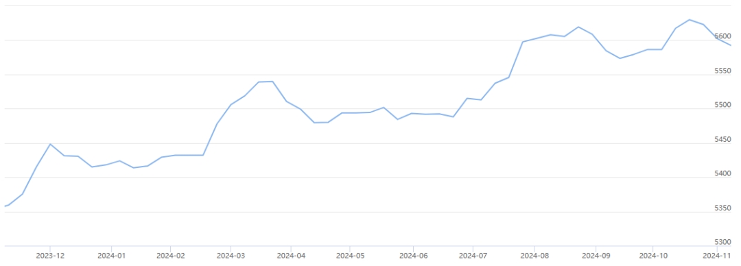 高品質(zhì)生絲指數(shù)上,協(xié)作單位所報(bào)筆數(shù)不及上周,價(jià)格繼續(xù)呈現(xiàn)高位小幅波動(dòng)格局,本周價(jià)格指數(shù)微跌0.18%報(bào)收于5592.10點(diǎn)。
