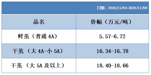 本周高品位生絲協(xié)作單位成交價(jià)格區(qū)間