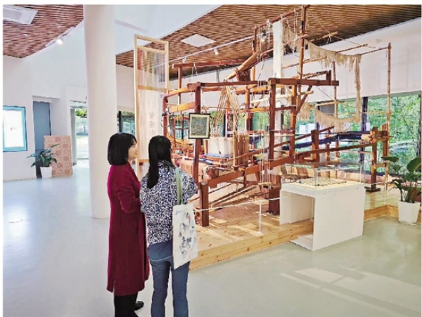 絲博館的“天蠶靈機(jī):中國蠶桑絲織技藝非物質(zhì)文化遺產(chǎn)展”里,幾臺(tái)大型的織機(jī)模型吸引了記者的注意。
