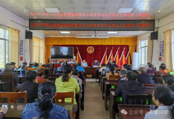 11月7日~8日劉吉平教授應(yīng)羅城縣農(nóng)業(yè)農(nóng)村局的邀請?jiān)诹_城縣喬善鄉(xiāng)為當(dāng)?shù)剞r(nóng)民50余人開展了“桑樹健康種植技術(shù)及病蟲害綠色防控措施”“商品小蠶的飼養(yǎng)與管理技術(shù)要點(diǎn)”“蠶病的發(fā)生規(guī)律與防控策略培訓(xùn)”以及“蠶桑資源的多元化開發(fā)與利用”等專題培訓(xùn),“頭雁”學(xué)員羅家康全程參加了培訓(xùn)。