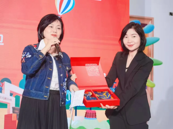 現(xiàn)場(chǎng)幸運(yùn)觀眾獲得一等獎(jiǎng)絲紡集團(tuán)文創(chuàng)禮盒