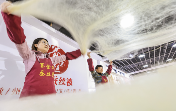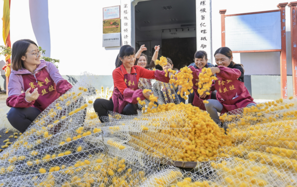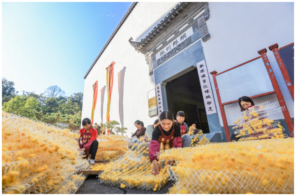 近期,在黃山市山水畫廊絲綢文化園,“十萬人家”蠶桑專業(yè)合作社養(yǎng)殖的晚秋“黃金繭”迎來了收獲時節(jié)。走進(jìn)絲綢文化園養(yǎng)殖車間,呈現(xiàn)在眼前的是一片金黃,一張張結(jié)繭網(wǎng)上布滿了黃色的蠶繭。安徽省蠶學(xué)會理事、黃山市山水畫廊絲綢文化園負(fù)責(zé)人凌志華介紹說:普通繭1年只能養(yǎng)四季,像這個“黃金繭”今年我們已經(jīng)收了第六季,而且“黃金繭”產(chǎn)量比普通蠶繭也高。