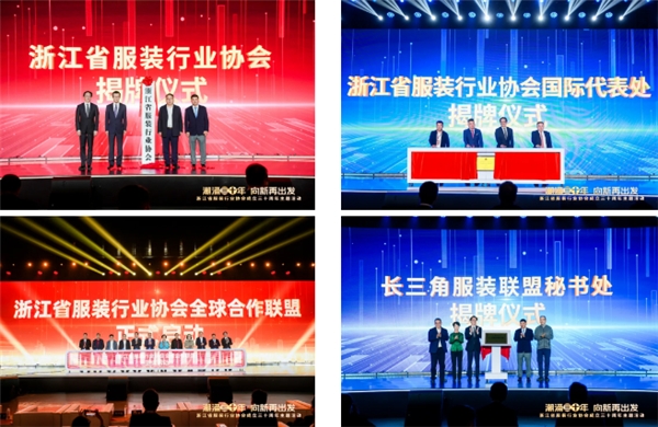 在全球化浪潮下,拓展全球視野、追求合作共贏,已然成為浙江服裝產(chǎn)業(yè)邁向高質(zhì)量發(fā)展的鮮明旗幟。在此背景下,活動(dòng)現(xiàn)場迎來了多個(gè)里程碑時(shí)刻:浙江省服裝行業(yè)協(xié)會(huì)、浙江省服裝行業(yè)協(xié)會(huì)法國代表處、浙江省服裝行業(yè)協(xié)會(huì)意大利米蘭代表處、浙江省服裝行業(yè)協(xié)會(huì)意大利普拉托代表處揭牌儀式,以及全球合作聯(lián)盟的啟動(dòng)儀式的舉行,標(biāo)志著浙江服裝產(chǎn)業(yè)邁出了國際化布局的重要步伐。同時(shí),長三角服裝聯(lián)盟秘書處與浙江省服裝行業(yè)協(xié)會(huì)秘書處落戶臨平揭牌儀式的舉行,更是強(qiáng)化了區(qū)域間的合作與交流,進(jìn)一步促進(jìn)了各方優(yōu)勢(shì)互補(bǔ)、共贏發(fā)展。