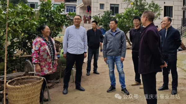 2024年11月15日,重慶市蠶業(yè)總站副站長余華獻高級農(nóng)藝師、市蠶桑產(chǎn)業(yè)技術(shù)體系副首席郭銘建高級農(nóng)藝師,市繭絲綢行業(yè)協(xié)會鐘興權(quán)秘書長等一行7人,前往墊江縣開展蠶桑產(chǎn)業(yè)調(diào)研,縣委農(nóng)業(yè)農(nóng)村工委委員皮欣、縣鄉(xiāng)村振興服務中心主任章志國等人陪同調(diào)研。
