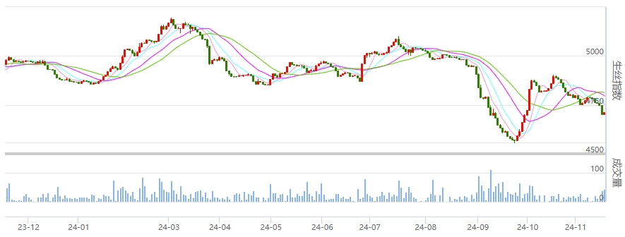 20/22D商檢4A級生絲:今日(周二)生絲盤面各遠(yuǎn)近合約價格價格漲跌不一,主力合約下午多收紅。241125生絲合約即將交收,今日減倉收紅。250925合約今日也換手積極。整體上,全場成交較昨日活躍。