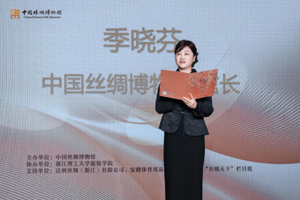 開幕式上,領(lǐng)導(dǎo)嘉賓觀看了今年10月在法國國立吉美亞洲藝術(shù)博物館舉辦的2024“絲綢之路周”收官活動的回顧視頻,這也是國絲第一次以“絲路文物活化設(shè)計”為主題,走進(jìn)浪漫之都巴黎。中國絲綢博物館季曉芬館長團(tuán)隊攜手浙江理工大學(xué)團(tuán)隊、法國設(shè)計師、安踏設(shè)計團(tuán)隊,共創(chuàng)了以館藏唐代翼馬紋錦和立獅寶花紋錦為靈感源的60多套鞋服,并采用中國蠶桑絲織技藝和現(xiàn)代科技完成作品制作。季館長認(rèn)為絲綢是傳統(tǒng)的,更是時尚的,絲綢與時尚有著共通的內(nèi)核,那就是生活的美與藝術(shù)。時尚是一種面向未來的藝術(shù),時尚是一種朝氣蓬勃的力量,時尚是一種超越時空的價值。希望“絲尚盛典”能夠架設(shè)起一道從絲綢博物館到時尚藝術(shù)界,到時尚產(chǎn)業(yè)界,再到時尚愛好者的橋梁,讓古老的絲綢和絲路文化通過時尚的方式煥發(fā)出璀璨的時代光彩。