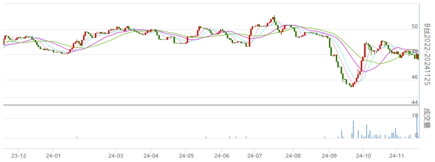 今日(2024年11月20日,周三)中國繭絲綢交易市場生絲電子指數(shù)下跌0.33%收于4697.91點。B絲2022D(商檢4A級生絲):241125合約下跌0.36萬元報收于47.67萬元;250325合約下跌0.03萬元報收于46.74萬元;250925合約下跌0.12萬元報收于46.32萬元。