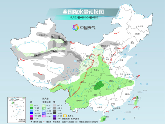 后天,內(nèi)蒙古中部和東部、吉林西部、遼寧西部、黑龍江西部、新疆南疆盆地、西藏東部、青海東部、甘肅河西、華北中北部和西部、川西高原等地部分地區(qū)有小雪或雨夾雪,其中,內(nèi)蒙古中部、青海東部、甘肅河西、河北北部等地部分地區(qū)有中到大雪。西北地區(qū)東南部、黃淮、江淮、江漢、江南、西南地區(qū)東部、華南大部、臺(tái)灣島等地部分地區(qū)有小到中雨,其中,湖南中西部和北部、貴州東北部等地部分地區(qū)有大雨。