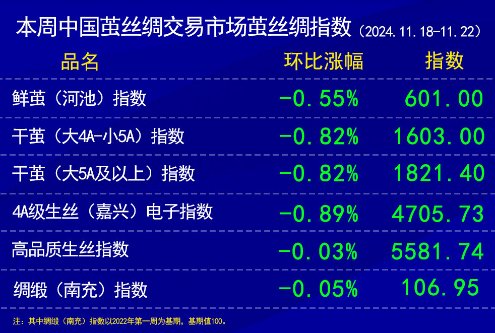 本周中國繭絲綢交易市場繭絲綢指數(shù)