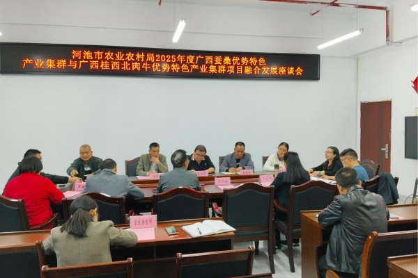 25日,座談會在河池市農(nóng)業(yè)農(nóng)村局會議室召開,會議旨在推進(jìn)廣西桑蠶優(yōu)勢特色產(chǎn)業(yè)集群與廣西桂西北肉牛優(yōu)勢特色產(chǎn)業(yè)集群項目協(xié)同合作發(fā)展。會上,專家針對兩個產(chǎn)業(yè)集群,提出以桑枝飼料化和肉牛高值化為抓手來開展兩個項目深度協(xié)同融合發(fā)展的建議。同時雙方就深度開展校政合作進(jìn)行了友好協(xié)商。