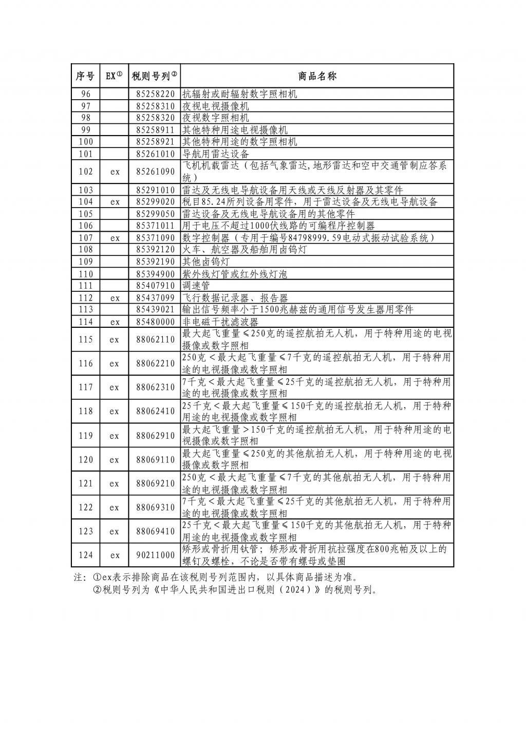 自2024年12月1日至2025年2月28日,對(duì)附件所列商品,繼續(xù)不加征我為反制美301措施所加征的關(guān)稅。