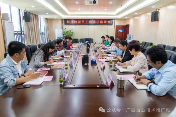 座談會上,廣西蠶業(yè)技術(shù)推廣站黃紅燕副站長向調(diào)研組介紹了單位特派員工作的開展情況;科技特派員代表匯報(bào)了服務(wù)工作中存在的問題、困難,并提出了意見和建議。胡熳華對廣西蠶業(yè)技術(shù)推廣站特派員工作開展情況和對特派員提供的科研保障和服務(wù)保障表示了肯定。她指出今年是科技特派員制度推行的第25年,25年來,廣大科技特派員走進(jìn)基層、深耕田間,在助力科技創(chuàng)新和產(chǎn)業(yè)創(chuàng)新深度融合方面取得了突出成效。新時代新征程上,要進(jìn)一步推行科技特派員制度,更加注重團(tuán)隊(duì)服務(wù)的力量,“把科研做在產(chǎn)業(yè)中、把論文寫在大地上”。