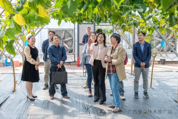 調(diào)研以實(shí)地考察和座談的形式開展。調(diào)研組一行先后對人工飼料養(yǎng)蠶研發(fā)中心、果桑農(nóng)旅融合高效發(fā)展新模式示范大棚、廣西蠶桑遺傳改良與高效種養(yǎng)重點(diǎn)實(shí)驗(yàn)室和科研成果展示館進(jìn)行考察。調(diào)研組對廣西蠶桑產(chǎn)業(yè)發(fā)展情況和廣西蠶業(yè)技術(shù)推廣站在產(chǎn)業(yè)發(fā)展中提供的科技支撐有了進(jìn)一步了解。