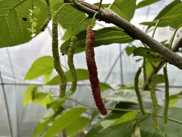 在與該公司合作的8年里,師生成功選育了一個(gè)果、葉兩用桑新品種“1208”,不僅桑葉產(chǎn)量比普通養(yǎng)蠶桑增加10%以上,而且每畝可以盛產(chǎn)桑果3000-5000 斤,并且桑果產(chǎn)量及口感得到提升,突破了幾千年來(lái)栽桑養(yǎng)蠶的單一模式,桑葉不僅可以用來(lái)養(yǎng)蠶,桑果還可以采摘和進(jìn)行深加工,畝均效益達(dá)到4-5萬(wàn)元,大大提升了蠶桑綜合效益。