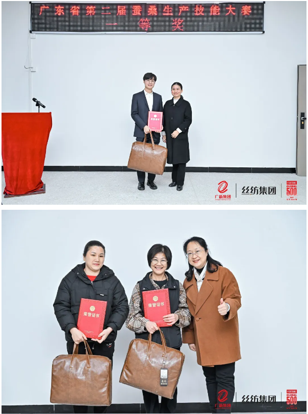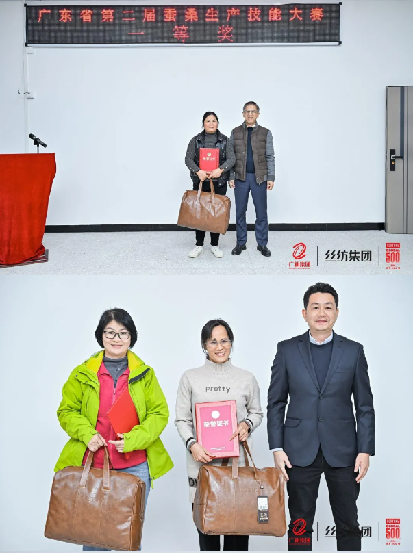 翁源縣總工會副主席鐘燕梅,廣新集團(tuán)工會副主席陳佳,絲紡集團(tuán)黨委副書記、董事、紀(jì)委書記段彬心,黨委委員、副總經(jīng)理梁駿,廣東省蠶學(xué)會理事長邱國祥出席大賽。