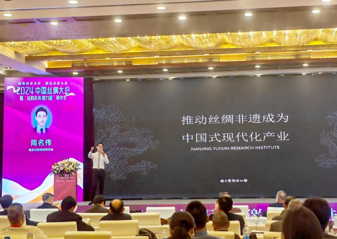 南京云錦研究所所長簡名偉發(fā)表題為“推動(dòng)絲綢非遺成為中國式現(xiàn)代化產(chǎn)業(yè)”主題演講