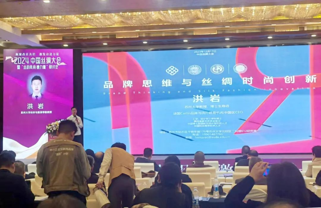 蘇州大學(xué)紡織與服裝學(xué)院教授洪巖發(fā)表題為“品牌思維與絲綢時(shí)尚創(chuàng)新”的主題演講