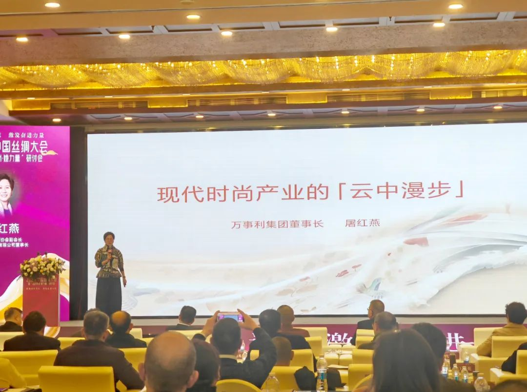中國絲綢協(xié)會(huì)副會(huì)長、萬事利集團(tuán)有限公司董事長屠紅燕發(fā)表題為“現(xiàn)代時(shí)尚產(chǎn)業(yè)的‘云中漫步’” 的主題演講