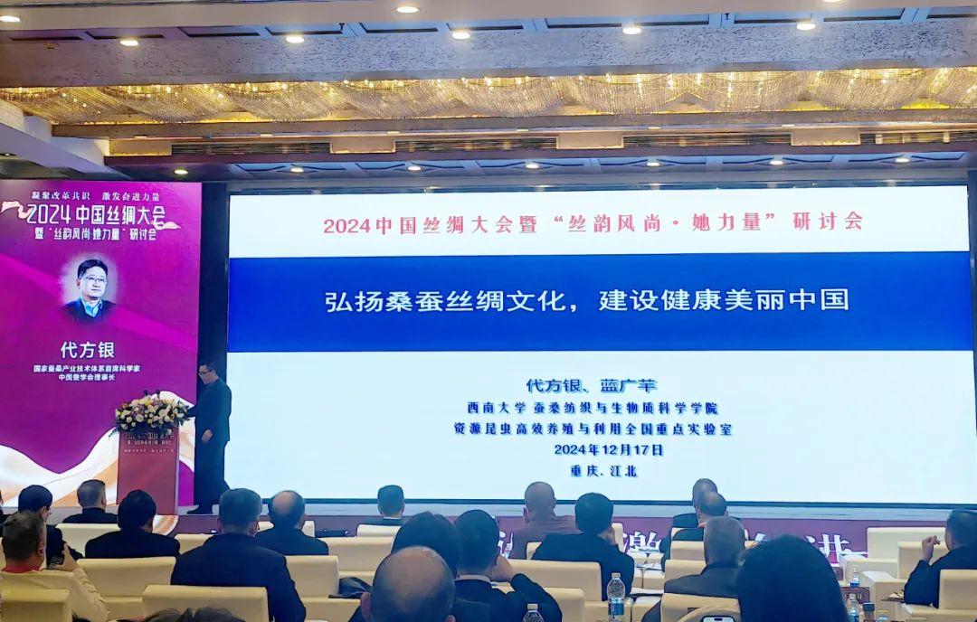 受中國蠶學(xué)會(huì)理事長代方銀委托,藍(lán)廣芊副院長發(fā)表題為“弘揚(yáng)桑蠶絲綢文化,建設(shè)健康美麗中國”的主題演講