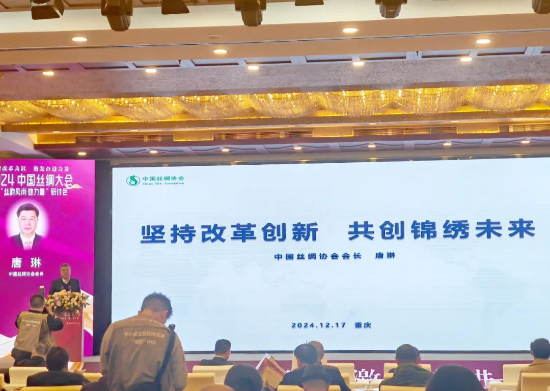 唐會(huì)長圍繞當(dāng)前繭絲綢行業(yè)經(jīng)濟(jì)運(yùn)行情況、2024年協(xié)會(huì)主要工作回顧及2025年工作計(jì)劃等三方面作“堅(jiān)持改革創(chuàng)新 共創(chuàng)錦繡未來”的主題報(bào)告。
