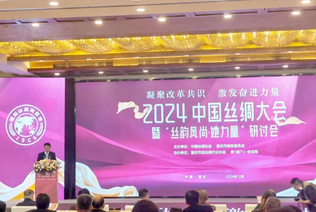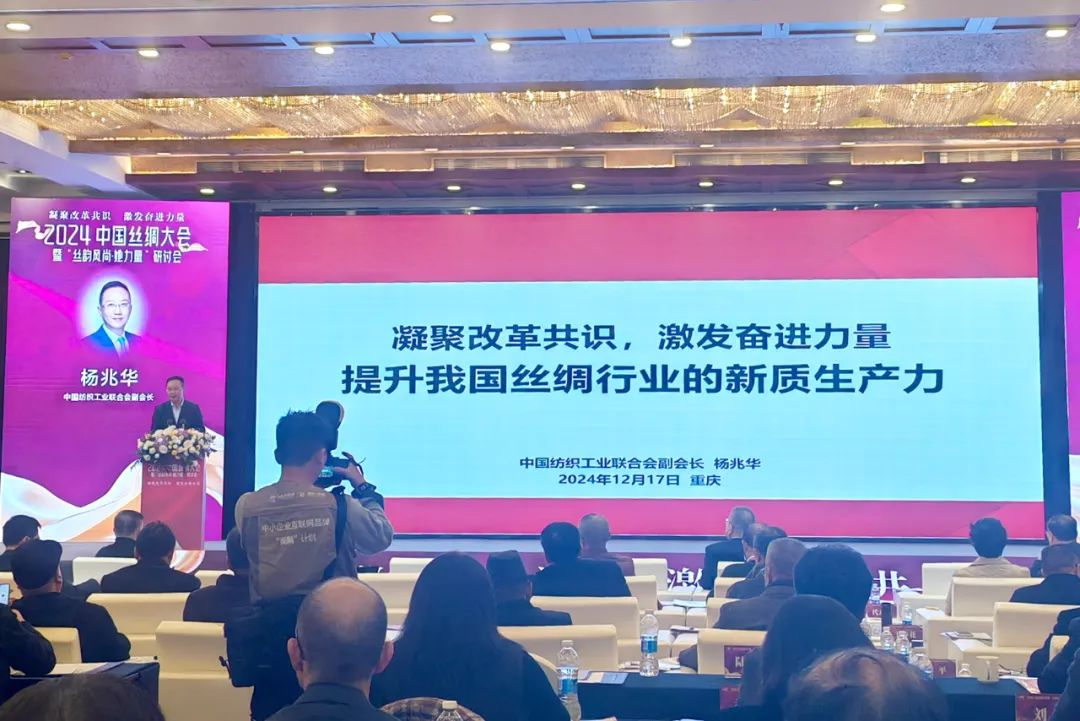楊會(huì)長圍繞2024年以來行業(yè)運(yùn)行情況、提振信心和把握機(jī)遇、鑄就核心和賦能發(fā)展等三方面發(fā)表題為“凝聚改革共識,激發(fā)奮進(jìn)力量 提升我國絲綢行業(yè)的新質(zhì)生產(chǎn)力”的主題演講。