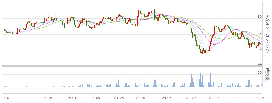 今日(2024年12月4日,周三)中國(guó)繭絲綢交易市場(chǎng)生絲電子指數(shù)微跌0.09%收于4692.78點(diǎn)。B絲2022D(商檢4A級(jí)生絲):241225合約下跌0.06萬(wàn)元報(bào)收于47.73萬(wàn)元;250325合約報(bào)平收于46.80萬(wàn)元;250925合約上漲0.06萬(wàn)元報(bào)收于46.20萬(wàn)元。