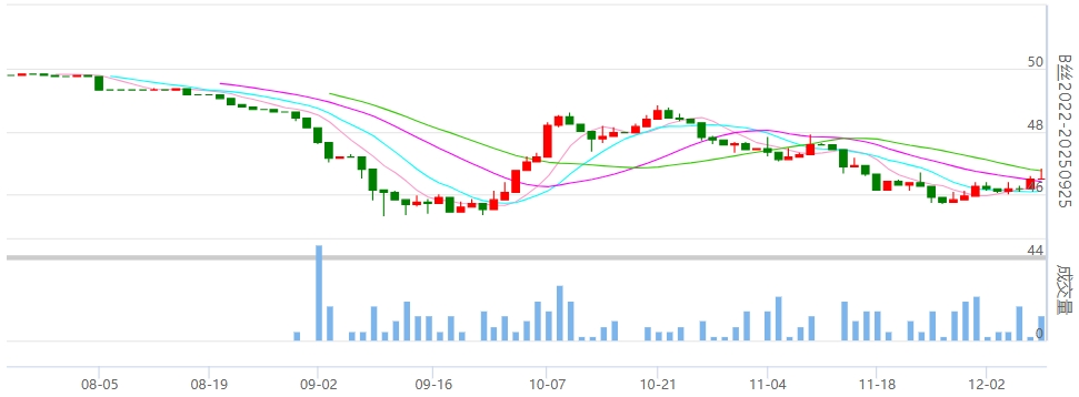 今日(2024年12月9日,周一)中國(guó)繭絲綢交易市場(chǎng)生絲電子指數(shù)上漲0.23%收于4716.03點(diǎn)。B絲2022D(商檢4A級(jí)生絲):241225合約上漲0.06萬元報(bào)收于47.82萬元;250325合約上漲0.12萬元報(bào)收于47.40萬元;250925合約上漲0.03報(bào)收于46.53萬元。