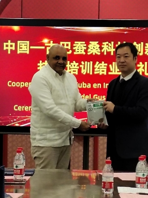 古巴培訓組組長埃米利奧?安東尼奧先生代表學員作總結(jié)交流,特別感謝中方提供的全方位培訓學習機會,感受到了中古兩國間的深厚兄弟情誼,表示將把所學知識運用到古巴相關(guān)產(chǎn)業(yè)中,推動古巴國家蠶桑產(chǎn)業(yè)的可持續(xù)發(fā)展。