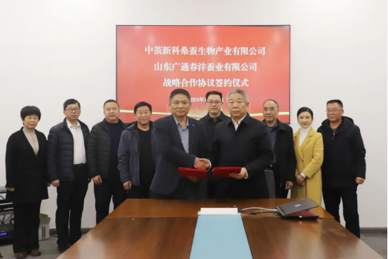 12月21日,中繭新科桑蠶生物產(chǎn)業(yè)有限公司與廣通蠶種集團(tuán)在長(zhǎng)沙簽訂了戰(zhàn)略合作協(xié)議,中繭新科董事長(zhǎng)范茂林與廣通蠶種集團(tuán)董事長(zhǎng)連海剛簽約,湖南省蠶??茖W(xué)研究所所長(zhǎng)劉飛馳見證簽約。雙方就蠶種生產(chǎn)供應(yīng)達(dá)成共識(shí),標(biāo)志著中繭新科在蠶種領(lǐng)域的又一重要里程碑。