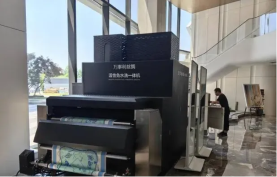 站在新研制的世界領(lǐng)先的萬(wàn)事利活性免水洗印染一體機(jī)前,一條絲巾經(jīng)過(guò)AI設(shè)計(jì)馬上就能打印出來(lái)。特別是AI設(shè)計(jì),3秒鐘就能出20多款花型,而傳統(tǒng)的設(shè)計(jì)師,也許3天才能做出一個(gè)花型,這背后就是萬(wàn)事利首創(chuàng)的AIGC設(shè)計(jì)大模型在支撐,它能夠?yàn)槿?0億人每人定制10萬(wàn)條絲巾且不重樣。