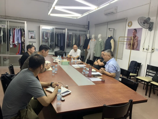 調(diào)研組在柬期間聽取了工廠近年來的工作總結(jié)及下一步規(guī)劃相關(guān)匯報(bào),并就工廠生產(chǎn)實(shí)際和未來目標(biāo)提出合理化的建議。當(dāng)前,柬埔寨晟和工廠經(jīng)過不懈的努力已初步實(shí)現(xiàn)數(shù)字化轉(zhuǎn)型,成為了一家能夠適應(yīng)多品類生產(chǎn)、具備較強(qiáng)競爭優(yōu)勢的現(xiàn)代化生產(chǎn)基地。調(diào)研組還走訪了紅豆集團(tuán)、嘉興絲綢集團(tuán)、華鼎集團(tuán)在柬投資企業(yè),雙方就進(jìn)一步加強(qiáng)合作深入交換意見,并達(dá)成共識。