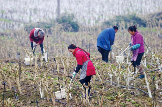 12月21日,村民在太極鎮(zhèn)李子村蠶?;亟o桑樹刷防蟲石灰水進(jìn)行冬管