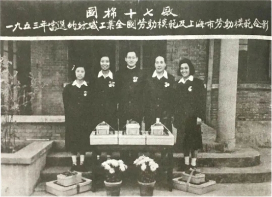 1953年,黃寶妹(左二)獲評(píng)紡織工業(yè)部勞動(dòng)模范