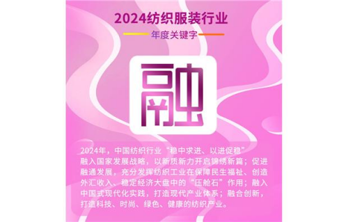 2024年,中國紡織行業(yè)“穩(wěn)中求進(jìn)、以進(jìn)促穩(wěn)”融入國家發(fā)展戰(zhàn)略,以新質(zhì)新力開啟錦繡新篇;促進(jìn)融通發(fā)展,充分發(fā)揮紡織工業(yè)在保障民生福祉、創(chuàng)造外匯收入、穩(wěn)定經(jīng)濟(jì)大盤中的“壓艙石”作用;融入中國式現(xiàn)代化實(shí)踐,打造現(xiàn)代產(chǎn)業(yè)體系;融合創(chuàng)新,打造科技、時(shí)尚、綠色、健康的紡織產(chǎn)業(yè)。