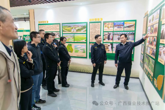 調研組先后參觀了人工飼料養(yǎng)蠶基地、蠶桑種質資源保護庫、蠶種質量檢驗檢疫站和科研成果展示館,并與廣西蠶業(yè)技術推廣站領導班子及相關科室負責人進行座談交流。