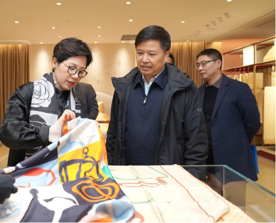 1月7日,浙江省商務(wù)廳黨組書記、廳長韓杰一行到訪萬事利集團(tuán),專題就絲綢歷史經(jīng)典產(chǎn)業(yè)創(chuàng)新發(fā)展和品牌“出?!鼻闆r開展調(diào)研。上城區(qū)副區(qū)長洪夢君等領(lǐng)導(dǎo)陪同調(diào)研。