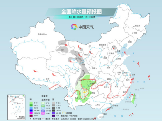 具體來(lái)看,今天,新疆東部、甘肅、青海東北部、內(nèi)蒙古西部、川西高原東部以及貴州西部、云南東北部等地部分地區(qū)有小到中雪或雨夾雪。貴州西部等地局地有凍雨。四川盆地、重慶中西部、貴州中西部、云南中東部、廣西西北部、臺(tái)灣島中東部等地部分地區(qū)有小雨。
