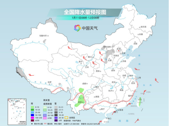 今后三天,西南地區(qū)和西北地區(qū)仍有雨雪天氣,但總體呈減弱趨勢(shì)。中東部大部則是雨雪稀少,以晴間多云天氣為主。