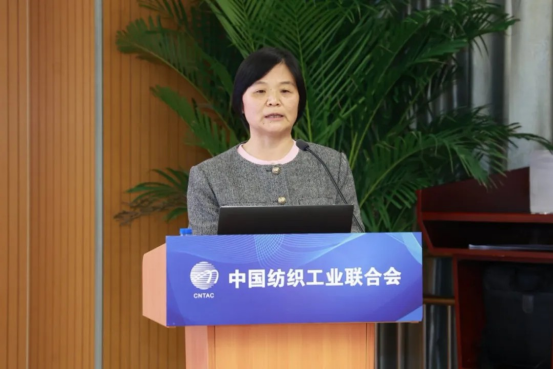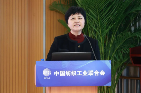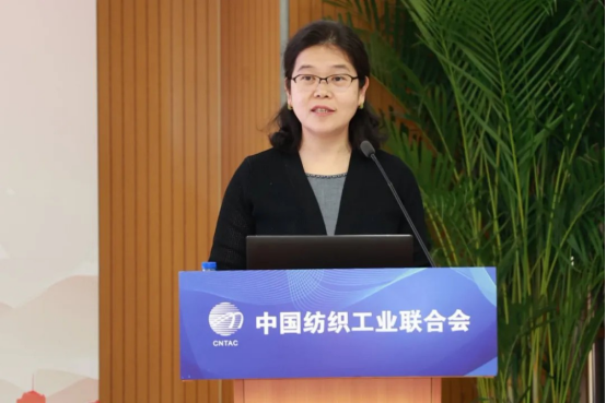 中國印染行業(yè)協(xié)會會長林琳作印染行業(yè)經(jīng)濟(jì)運行分析及重點工作總結(jié)。