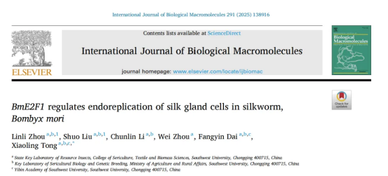 資源昆蟲高效養(yǎng)殖與利用全國(guó)重點(diǎn)實(shí)驗(yàn)室童曉玲教授課題組前期研究發(fā)現(xiàn)BmE2F1能顯著提升家蠶的繭絲產(chǎn)量(Nat. Commun,2022),但是其具體的分子機(jī)制尚不清楚。2024年12月26日,該課題組在國(guó)際學(xué)術(shù)期刊International Journal of Biological Macromolecules(中科院一區(qū))在線發(fā)表了題為“BmE2F1 regulates endoreplication of silk gland cells in silkworm, Bombyx mori”的研究論文,該研究揭示轉(zhuǎn)錄因子BmE2F1通過(guò)調(diào)控絲腺細(xì)胞核內(nèi)復(fù)制進(jìn)而影響家蠶繭絲產(chǎn)量。