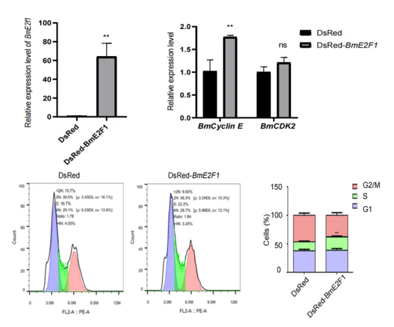 圖3. BmE2F1促進(jìn)家蠶細(xì)胞進(jìn)入S期(DNA 復(fù)制期)