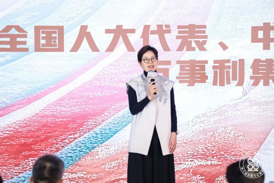 全國(guó)人大代表、中國(guó)絲綢協(xié)會(huì)副會(huì)長(zhǎng)、杭州市絲綢行業(yè)協(xié)會(huì)會(huì)長(zhǎng)、萬(wàn)事利集團(tuán)董事長(zhǎng)屠紅燕致辭