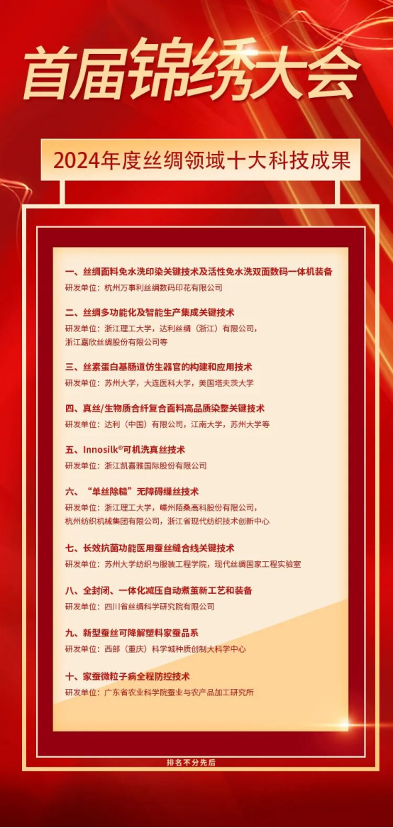 2024年,絲綢科技創(chuàng)新再次引領(lǐng)絲綢行業(yè)邁向新高峰, 每一項(xiàng)成果都閃耀著智慧與汗水、彰顯著創(chuàng)新與匠心,為絲綢的科技創(chuàng)新與發(fā)展注入了新的生命力。蘇州大學(xué)紡織與服裝學(xué)院原院長(zhǎng)陳國(guó)強(qiáng)與大家共同揭曉“絲綢領(lǐng)域年度十大科技成果”!