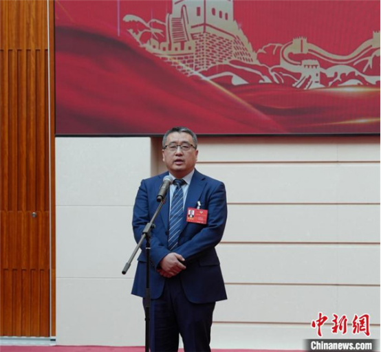 圖為內(nèi)蒙古自治區(qū)政協(xié)委員程曉虎在2025年內(nèi)蒙古自治區(qū)兩會期間參加委員通道采訪