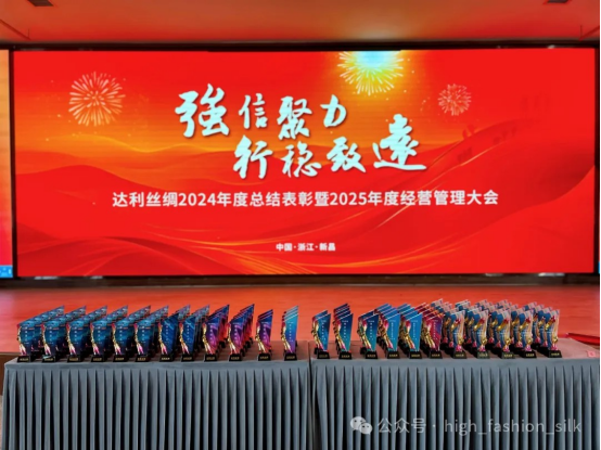 1月14日,達利絲綢在會議中心隆重召開2024年度總結(jié)表彰暨2025年度經(jīng)營管理大會。