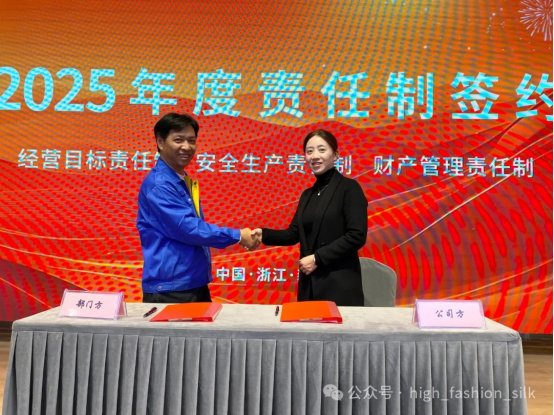 會議舉行了2025年度責任制簽約儀式,董事總經(jīng)理張金珍代表公司與各部門簽訂了2025年度經(jīng)營目標責任制,安全生產(chǎn)責任制,財產(chǎn)管理責任制。