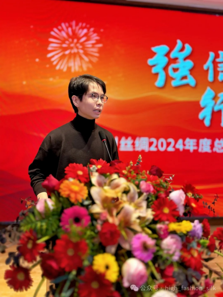 中國絲綢協(xié)會副會長、公司董事總經(jīng)理張金珍作達利絲綢2024年度工作總結(jié)報告和2025年度工作部署。