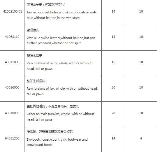 三、12個(gè)皮革行業(yè)產(chǎn)品的暫定下調(diào)進(jìn)口稅率保持不變